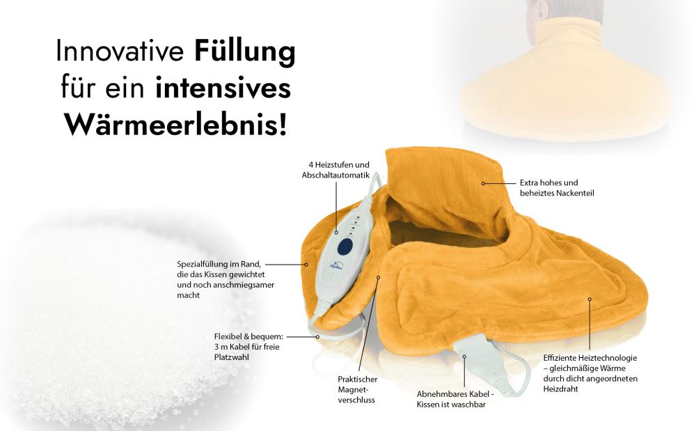 - Füllung erhöht den Körperkontakt mit dem Heizkissen