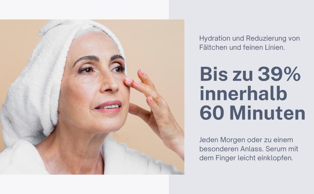 - Faltenminimierung um bis zu 39% innerhalb 60 Minuten